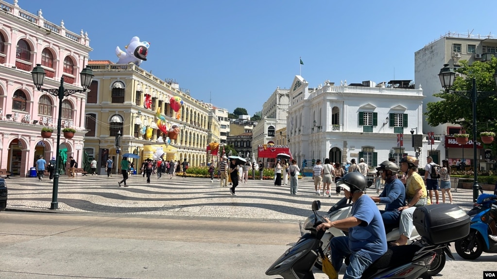 澳門旅遊熱點「大馬路」在日間人流稀疏。澳門經濟支柱旅遊業的不景氣是市民關注的要點。(美國之音)