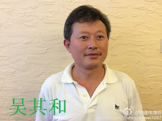 吴其和简介:江苏苏州人权捍卫者。2016年的98日,被苏州市公安局姑苏分局城北派出所以“涉嫌扰乱法庭秩序”带走询问。201699日,吴其和先生被常熟市公安局以“涉嫌扰乱法庭秩序”指定居所监视居住,非法监视居住6个月期满后,2017年的38日, 吴其和因被变更罪名以“涉嫌寻衅滋事”经常熟市人民检察院批准,被苏州市公安局直属分局执行逮捕,羁押在苏州市第一看守所。吴其和面对暴政决不妥协、不出卖朋友、不认罪,态度坚决,令人钦佩致敬。